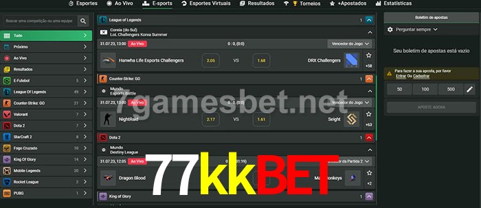 O 77kkbet oferece uma grande seleção de opções de apostas em e-sports com probabilidades competitivas